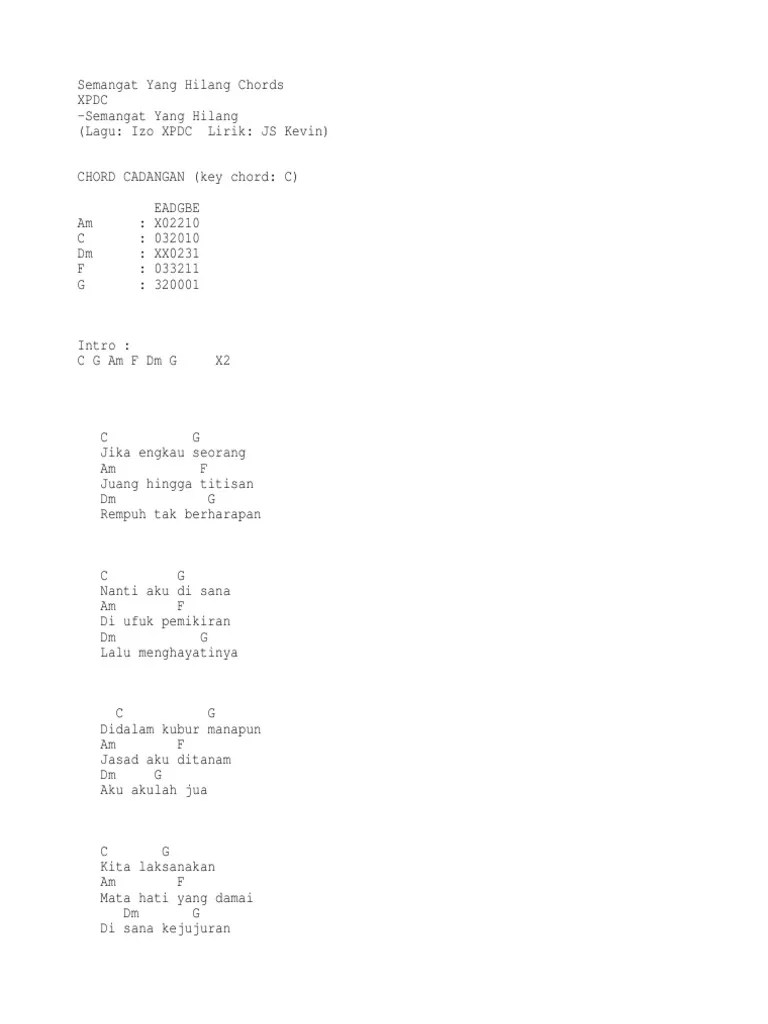 Hilang Chord Guitar. Create and get +5 iq. Am am g c ku coba ungkap tabir ini dm a dm kisah antara kau dan aku g c terpisahkan oleh ruang dan waktu dm e am. intro g am g am g am g am g hey, lewati jalan kehidupan am yang dulu kita rasakan c dan terus kita rasakan g dan kini semua hilang tak berarti am bagai angin yang berhembus am rasa itu terbawa pergi g kita pernah coba g menggapai semua mimpi am jalani bersama am satukan harapan c d ohh. Am e am e am e.
